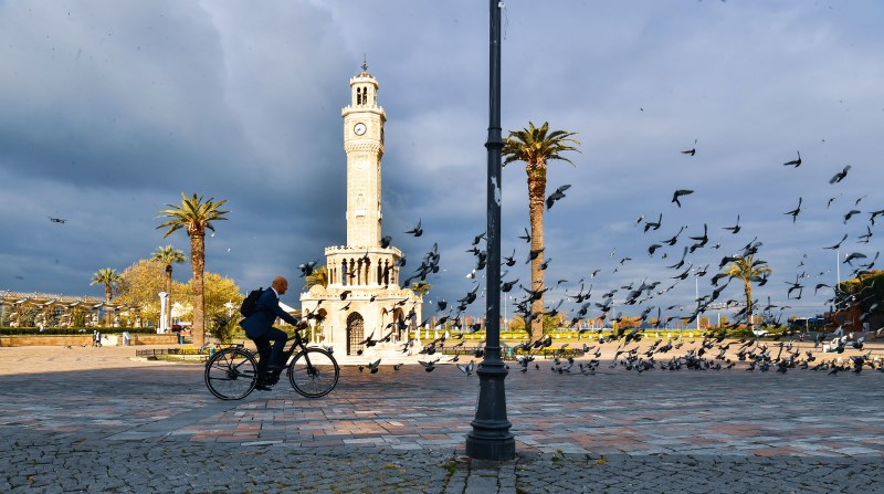 İzmir Büyükşehir Belediye Başkanı Tunç Soyer Konak Meydanı’nın simgesi haline gelen güvercinleri de unutmadı. İzmirlilerin attığı yemlerle beslenen güvercinler, meydanın eski kalabalığını yitirmesi yüzünden aç kalınca her gün bir görevli güvercinleri yemlemeye başladı. Başkan Soyer de özellikle bisikletle geldiği günler, sırt çantasında getirdiği yemlerle güvercinleri besleyerek mesaiye başlıyor.