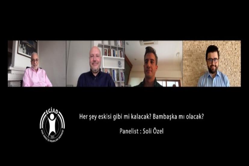 EGİAD Ege Genç İş İnsanları Derneği, Covid 19 sebebiyle fiziki şartlarda gerçekleştiremediği seminerlerini webinar olarak sürdürmeye devam ediyor. Türkiye’nin en güçlü sivil toplum örgütleri arasında yer alan EGİAD’ın son konuğu Kadir Has Üniversitesi Uluslararası İlişkiler Bölümü Öğretim Görevlisi, Dış Politika Uzmanı, Siyaset Bilimci ve Yazar Soli Özel oldu.