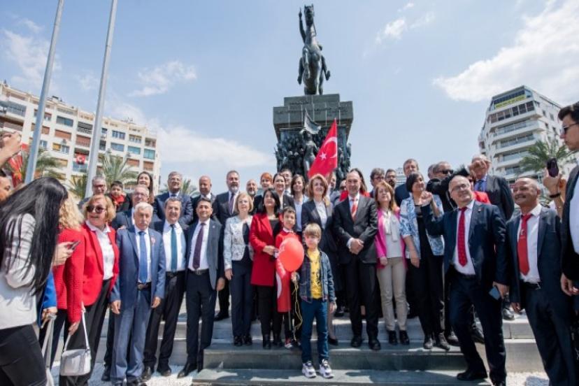 İzmir Büyükşehir Belediye Başkanı Tunç Soyer, 23 Nisan Ulusal Egemenlik ve Çocuk Bayramı kapsamında Cumhuriyet Halk Partisi (CHP) İzmir İl Başkanlığı’nın düzenlediği kutlama programına katıldı. Cumhuriyet Meydanı’nda düzenlenen törene Başkan Tunç Soyer’in yanı sıra CHP İzmir İl Başkanı Şenol Aslanoğlu, CHP İzmir milletvekilleri, Millet İttifakı İzmir Milletvekili adayları, ilçe belediye başkanları, ilçe başkanları, meclis üyeleri, muhtarlar ve çok sayıda partili katıldı. Törende İl Başkanı Şenol Aslanoğlu, İl Kadın Kolları Başkanı Nurdan Şenkal Uçar ve İl Gençlik Kolları Başkanı Burak Kotan Cumhuriyet Meydanı’ndaki Atatürk anıtına çelenk bıraktı.