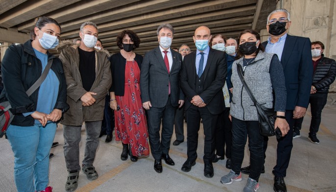 İzmir Büyükşehir Belediye Başkanı Tunç Soyer, Bornova Belediyesi’nin Yeni Özkanlar Pazaryeri’nde hizmete açtığı İkinci El Eşya Pazarı’nı ziyaret etti. Başkan Soyer’e eşi Neptün Soyer, Bornova Belediye Başkanı Dr. Mustafa İduğ ve İzmir Büyükşehir Belediyesi Genel Sekreteri Dr. Buğra Gökçe’nin de eşlik ettiği ziyarette tezgâhları gezen ve esnafla sohbet eden Başkan Soyer, zarf açacağı ve plak satın aldı. Eşi Neptün Soyer ise antika ayna ve denizci dürbünü alarak esnafa hayırlı olsun dedi.