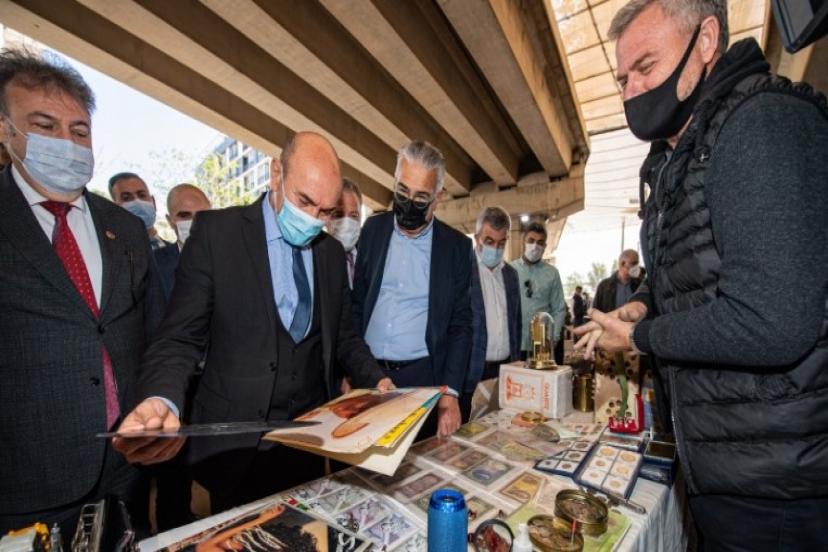 Dr. Mustafa İduğ iki yıldır kapalı olan pazar yerinin artık haftanın beş günü açık olduğunu ve kent ekonomisine katkı sağladığını söyleyerek Başkan Tunç Soyer’e desteği için teşekkür etti. Başkan Tunç Soyer, “Esnafa destek olmak için elimizden gelen ne varsa yapmaya hazırız. Onların yüzü güldüğü zaman memleketin huzuru, sağlığı yerine geliyor. Elimizden geldiği kadar destek olmaya ve sahip çıkmaya devam edeceğiz. Buradaki ürünlerin hepsi el emeği göz nuru. Yüzlerce yıl öncesine de giden var, ince ince titizlikle toplanmış objeler de. Her birinin başka bir anısı bulunuyor. O nedenle ikinci el pazarı çok kıymeti. Biz de her zaman destek çıkmaya devam edeceğiz” diye konuştu.