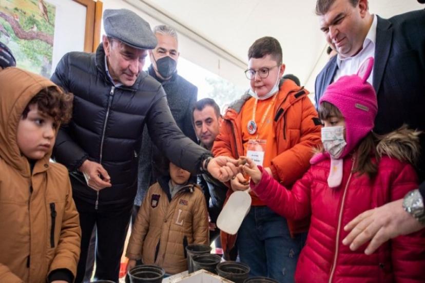 Başkan Tunç Soyer’i alanda Seferihisar Çocuk Belediyesi’nin minikleri çevreci pankartlarla karşıladı. Teker teker alandaki stantları gezen ve doğal bitki örtüsü hakkında bilgi alan Başkan Tunç Soyer, alanda kurulan bağış alanında iki adet tüylü meşe ağacı fidesi aldı. Etkinlikte ilk fidanı Başkan Tunç Soyer ve eşi Neptün Soyer toprakla buluşturdu. Ardından doğaseverler ve sivil toplum kuruluşları bağışladığı 3 bin 816 fidanın dikimini yaptı. Büyükşehir Belediyesi tarafından ulaşımı sağlanan yurttaşlar, yeşil bir kent için destek olurken unutamayacakları bir deneyim yaşadı.