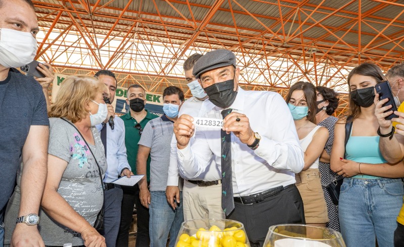 Başkan Soyer, 'Başka Bir Tarım' vizyonu doğrultusunda 2009 yılında Seferihisar'ın merkezinde kurulan üretici pazarını dolaşarak üreticilerle sohbet etti.