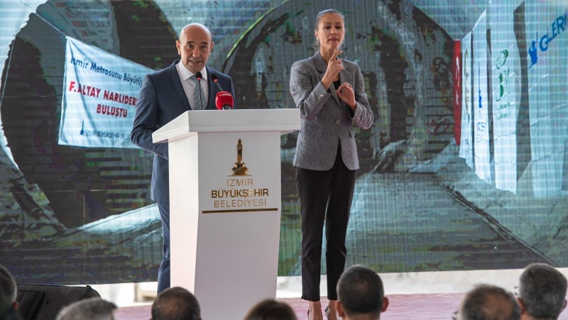 Törende konuşan İzmir Büyükşehir Belediye Başkanı Tunç Soyer, göreve geldiğinde inşaatının yüzde 12’si tamamlanmış durumda olan Fahrettin Altay -Narlıdere Metro Hattı’nda büyük bir hızla yol aldıklarına dikkat çekerek, “Mart 2019’da çıktığımız hizmet yolunda, bugün çok önemli bir kilometre taşını geride bıraktık. Bugün itibariyle çift yönlü toplam 14,5 kilometrelik tünel açma işinin sonuna geldik. Az sonra, tünel kazma makinesi TBM’in son tüneli de ışığa kavuşturmasıyla, Narlıdere metro inşaatının yüzde 82’si tamamlanmış olacak. Metro inşaatımızda aynı zamanda istasyon yapılarının yüzde 35’i, demiryolu işlerinin ise yüzde 23’ü tamamlandı. Yaklaşık 3 bin 300 metrelik ray döşendi. Yüklenici firmamız Gülermak’a çalışmaları nedeniyle teşekkür ediyorum. İnşallah Cumhuriyetimizin 100’üncü yılında Fahrettin Altay Narlıdere Metro Hattımızı hemşehrilerimizin hizmetine sunacağız” dedi.