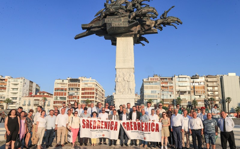 Konak Belediyesi, Konak Kent Konseyi ile Gültepe Makedonya Göçmenleri Kültür ve Dayanışma Derneği, SrebrenitsaKatliamı’nın27. yılı nedeniyle bir tören düzenledi. Alsancak Türkan Saylan Kültür Merkezi önünde yapılan törene Konak Belediye Başkanı Abdül Batur, Konak Belediyesi Meclis Üyesi ve Konak Kent Konseyi Başkanı Hamit Mumcu, Konak Belediyesi Meclis Üyesi ve Gültepe Makedonya Göçmenleri Kültür ve Dayanışma Derneği Başkanı Birol Özkardeşler’in yanı sıra Cumhuriyet Halk Partisi (CHP) İzmir Milletvekili Kani Beko, CHP Gençlik Kolları Genel Başkan Yardımcısı Cevat Eren Arslan, CHP İl Disiplin Kurulu Üyesi Kadir Altan, il yöneticileri, CHP Konak İlçe Başkanı Akın Küçükoğullarından, ilçe yöneticileri,Bosna Hersek Kültür Dernekleri Federasyonu Başkan Vekili Barbaros Taşer, Bosna Hersek Göçmenleri Birliği Başkanı Hasan Sehovic,Rumeli ve Balkan dernekleri ve federasyonlarının başkanları, Konak Belediye Meclisi üyeleri, sivil toplum kuruluşlarının ve siyasi partilerin temsilcileri, muhtarlar ile vatandaşlar katıldı.