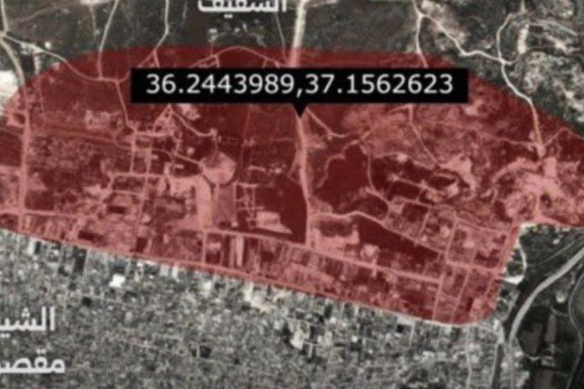 Açıklamada Halep'in Şeyh Maksut Mahallesi’nde, vurulacak noktaları gösteren bir harita yayınlandı.