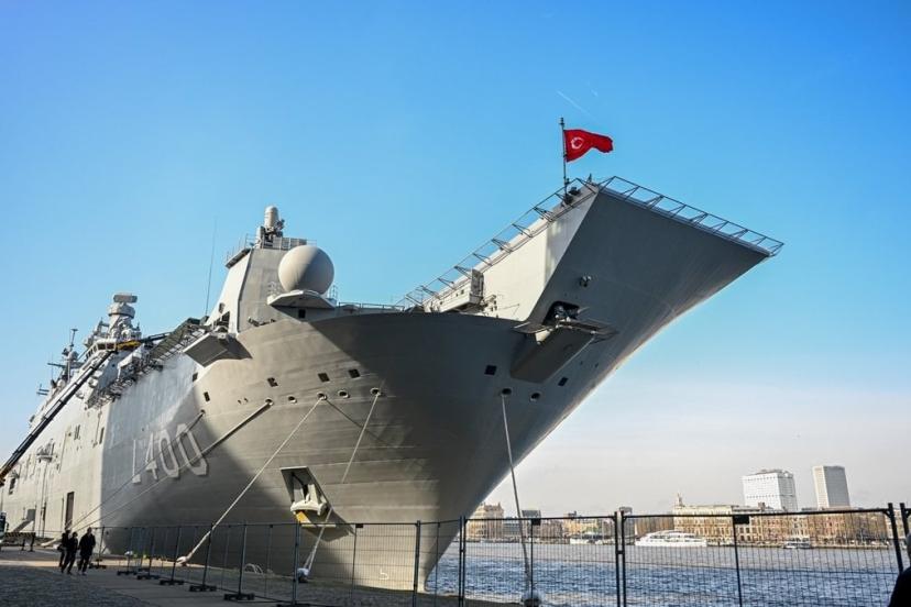 Beraberindeki 3 savaş gemisiyle 26 Şubat'ta Rotterdam Limanı'na demirleyen 232 metre uzunluğundaki TCG Anadolu SİHA gemisi, Hollanda medyasınca okuyucularına "etkileyici görüntü" olarak duyuruldu.