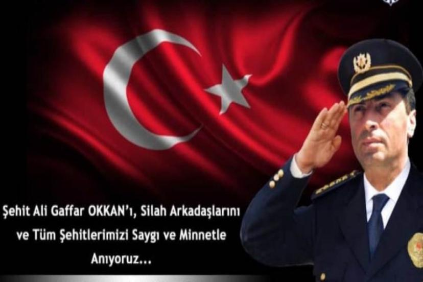 Şehidimiz Ali Gaffar OKKAN; 24 Ocak 2001 tarihinde, bütün gücü ile kökünü kazımaya çalıştığı terör örgütlerince düzenlenen alçakça saldırı sonucu beraberinde bulunan meslektaşlarımızla birlikte hunharca şehit edilmiştir. Şehidimizin cenazesi milletimizin yüksek katılımı ile mahşeri kalabalıkla kaldırılmış ve Hz.Peygamberimize komşu olmak üzere ebedi yolculuğuna uğurlanmıştır. Kendisine olan vefamız ve acımız hiç bir zaman dinmemiştir. Bu nedenle ki şehadetinin her yıl dönümünde geniş katılımla aynı duygularla anılmaya devam etmektedir. Ali Gaffar OKKAN ve bütün şehitlerimizi rahmet ve minnetle anıyoruz. Ruhları şad, mekanları cennet olsun.