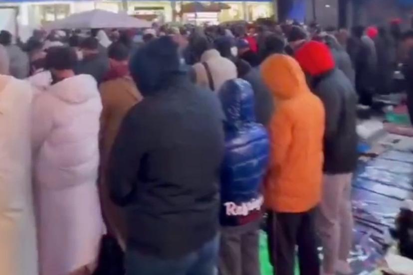 Görüntülerde, yüzlerce Müslüman'ın meydanda saf tutarak secde ettiği anlar yer aldı.