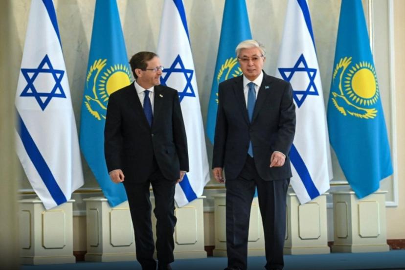 Kazakistan Cumhurbaşkanı Kasım Cömert Tokayev, resmi temaslarda bulunan işgal rejimi sözde Cumhurbaşkanı Isaac Herzog ile bir araya geldi.