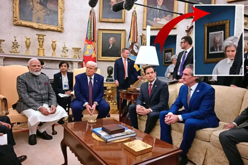 ABD Başkanı Donald Trump, resmi ziyaret kapsamında başkent Washington'da bulunan Hindistan Başbakanı Narendra Modi ile Beyaz Saray'da bir araya geldi. İki liderin görüşmesi sırasında Trump'ın sabıka fotoğrafının Oval Ofis'in girişine asıldığı görüldü.