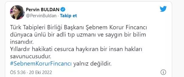 HDP'li milletvekilleri Pervin Buldan, Mithat Sancar, Meral Danış Beştaş ve Serpil Kemalbay, Fincancı'ya destek mesajları paylaştı.