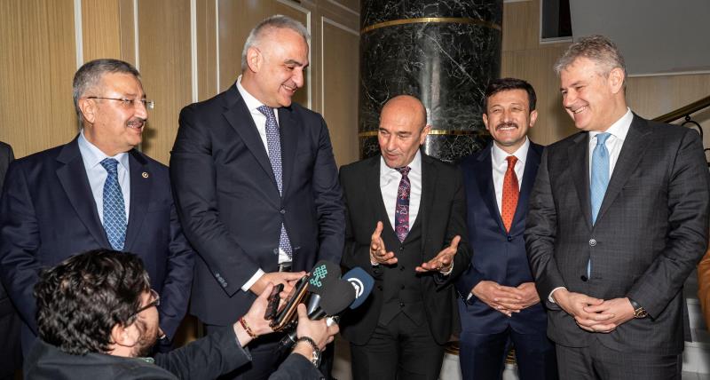 Kültür ve Turizm Bakanı Mehmet Nuri Ersoy ile İzmir Büyükşehir Belediye Başkanı Tunç Soyer bugün İzmir’de bir araya geldi. Görüşmede turizm projelerinin yerel ve merkezi yönetimin ortak anlayışıyla ilerlemesi konusunda mutabakata varıldı. Toplantıda, turizm projelerinin yerel ve merkezi yönetimin ortak anlayışıyla ilerlemesi gerektiğine ve kent vizyonunda fikir birliğinin önemine vurgu yapıldı.