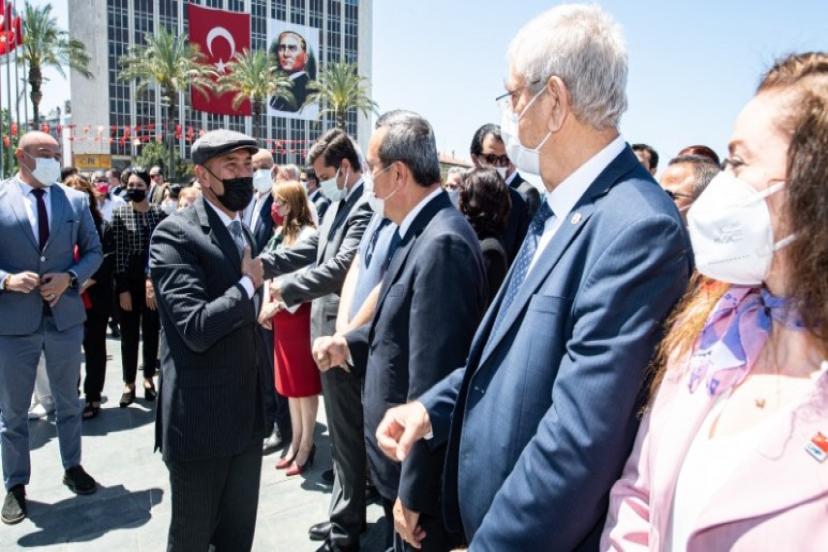 İzmir Büyükşehir Belediye Başkanı Tunç Soyer de törende şunları söyledi: “19 Mayıs Mustafa Kemal Atatürk’ü Anma, Gençlik ve Spor Bayramımız kutlu olsun. Belki de buradan Mustafa Kemal Atatürk’ü anmanın en güzel yolu, kuruluşun ve kurtuluşun şehri İzmir’den ona bir selam ve söz göndermek olur. İzmir Büyükşehir Belediye Başkanı Tunç Soyer de törende şunları söyledi: “19 Mayıs Mustafa Kemal Atatürk’ü Anma, Gençlik ve Spor Bayramımız kutlu olsun. Belki de buradan Mustafa Kemal Atatürk’ü anmanın en güzel yolu, kuruluşun ve kurtuluşun şehri İzmir’den ona bir selam ve söz göndermek olur. Hepimiz Türkiye’de kaybolan umutları yeniden yeşerteceğimize, onların canı pahasına bize armağan ettikleri bu cennet vatana sahip çıkacağımıza, onların anısına kimseye saygısızlık ettirmeyeceğimize, hiçbir genç kardeşimizin işsiz kalmasına izin vermeyeceğimiz günleri yaratacağımıza ve ikinci yüzyılında kurduğu cumhuriyeti demokrasiyle taçlandıracağımıza söz veriyoruz. Bayramımız kutlu olsun.”