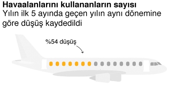 Devlet Hava Meydanları İşletmesi'nin (DHMİ) açıkladığı Mayıs ayı kesin olmayan verilere göre, yılın ilk beş ayında havalimanlarını kullanan toplam yolcu sayısı 2019'un aynı dönemine göre yüzde 54,6 gerileyerek, 33,7 milyona indi. Dış hatlar yolcu sayısındaki düşüş ise yüzde 58.