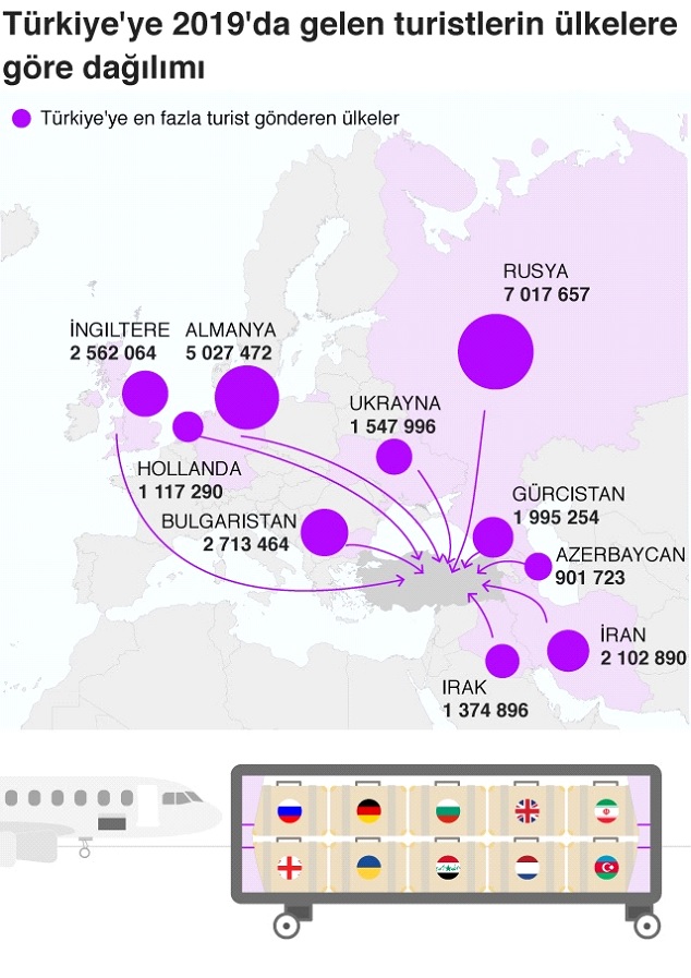 Türkiye'ye 2019 yılında en fazla vatandaşı gelen ülkelerin bazılarıyla seferler yeniden başlatılırken, bir kısmı ile kısıtlamaların hafifletilmesine yönelik görüşmeler yürütülüyor.