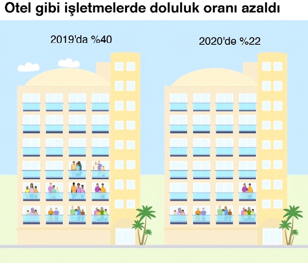 Mart 2020'de otellerde konaklayan yerli turist sayısı yüzde 39, Nisan ayında da yüzde 87 geriledi.
