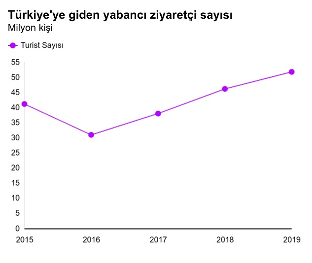 Cumhurbaşkanı Erdoğan, Ocak ayında yaptığı açıklamada, 2020 yılında turist sayısının 58 milyona, turizm gelirinin de 41 milyar dolara ulaşmasının hedeflendiğini söylemişti.