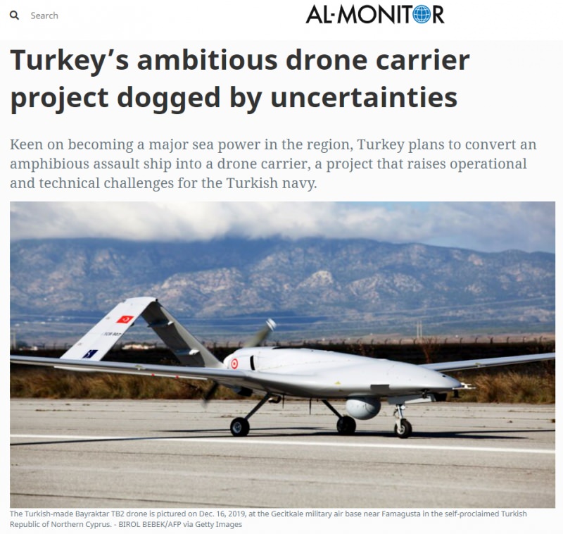 TCG Anadolu'nun bir SİHA gemisine dönüştürülecek olması üzerinde duran Al-Monitor, "Türkiye askeri alana yeni bir kavram kazandırıyor" ifadeleri kullanıldı.