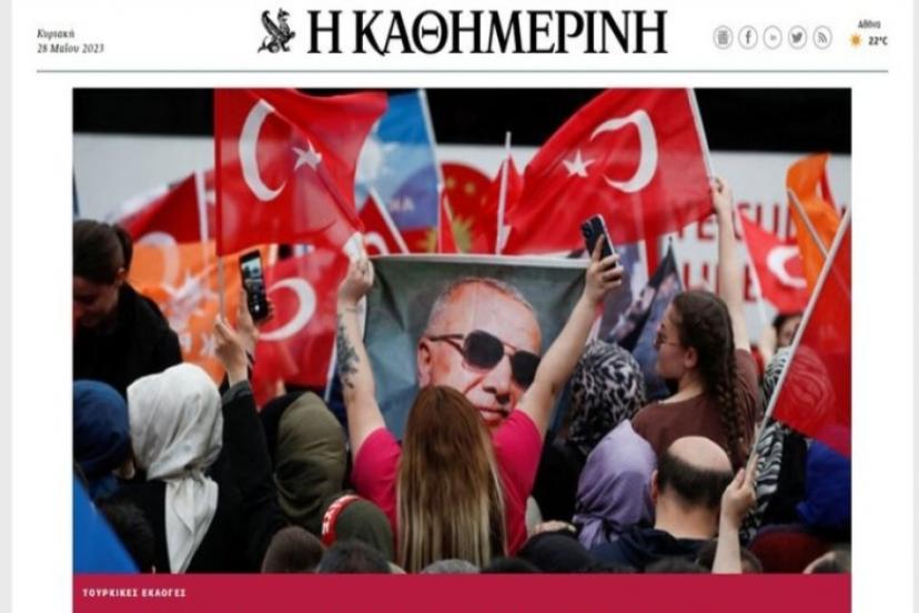 Yunan iefimerida, 'Erdoğan 5 yıl daha iktidara hazır' başlığı ile okuyucularının karşısına çıktı. İlk resmi olmayan sonuçları yayınlayan gazete 'Erdoğan zafer yolunda' dedi.