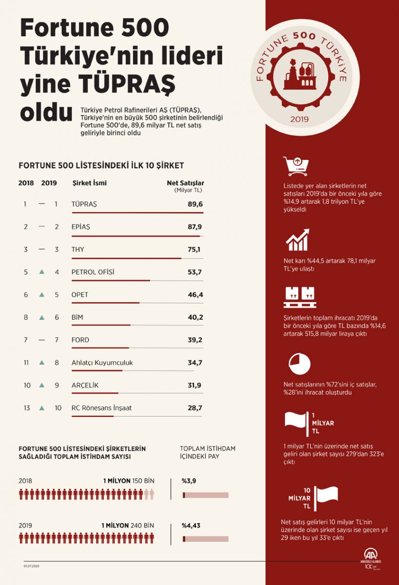 Yani kısa bir şekilde toparlamamız gerekirse Fortune 500 (2019) sonuçlarına göre Türkiye'nin en büyük ilk on şirketi şu şekilde: