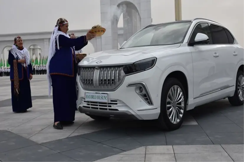 Sanayi ve Teknoloji Bakanı Mehmet Fatih Kacır ve Togg heyeti, Pamukkale'den adını alan beyaz renkli iki aracı, törenle Türkmenistan Devlet Başkanı Serdar Berdimuhammedov'a teslim etti. Yöresel kıyafetler giyen Türkmenistanlı kadınlar Togg'un üzerinde tütsü gezdirip bereket getirmesi için un serpti.