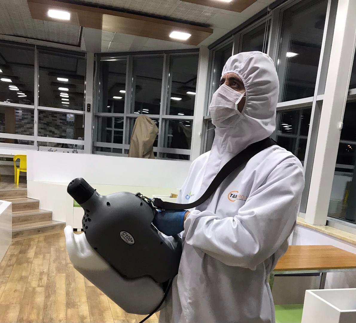 “Doğru ürün ve doğru cihazla kuru buhar şeklinde yapılan uygulama, Covid-19’un kitlelere yayılmasını ve bulaşmasını önleyen en etkili yöntemdir. Böylelikle havada çok uzun süre asılı kalabilme niteliğine kavuşacak olan dezenfektan partikülleri hem ortamdaki nefes yolu ile vücudunuza girebilme ihtimali yüksek hastalık yapıcı mikroorganizmaları yok edecek hem de mekanınızı hijyenik bir alana dönüştürecektir. Püskürtme ve yoğun ıslaklık bırakan sözde dezenfeksiyon uygulamaları asla havada asılı kalabilme kabiliyetine sahip olmayıp hemen yere çökmektedir. Bu tarz uygulamaların, nefes ve ağız yoluyla vücuda giren patojenlere karşı hiçbir geçerliliği bulunmamaktadır. TM Grup / Desenfeksiyon.Net olarak Türkiye’deki Covid-19 ‘a karşı etkinliği uluslararası test raporlarıyla onaylanmış ve yüzde 100 bitkisel olan tek dezenfektanı kullanmaktayız. Doğru ürün ve doğru uygulama ile kapalı alanlardaki bulaş riskini sıfıra indiriyoruz.“