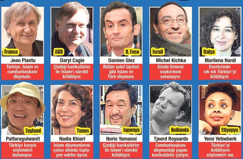 Türkiye ve İslam düşmanı çizerlere kucak açan 'Cartooning for Peace' yani 'Barış için Karikatür' isimli vakfın üyesi olan Fransa'dan Jean Plantu, ABD'den Daryl Cagle, Tunus'tan Nadia Khiari, İsrail'den Michel Kichka, Japonya'dan Norio Yamanoi, Hollanda'dan Tjeerd Royaards, Burkina Faso'dan Damien Glez, İtalya'dan Marilena Nardi, Tayland'dan Mor Thiwawat Pattaragulwanit ve Etiyopya'dan Yemi Yetneberk'i, İzmirliler ile buluşturacaktı.