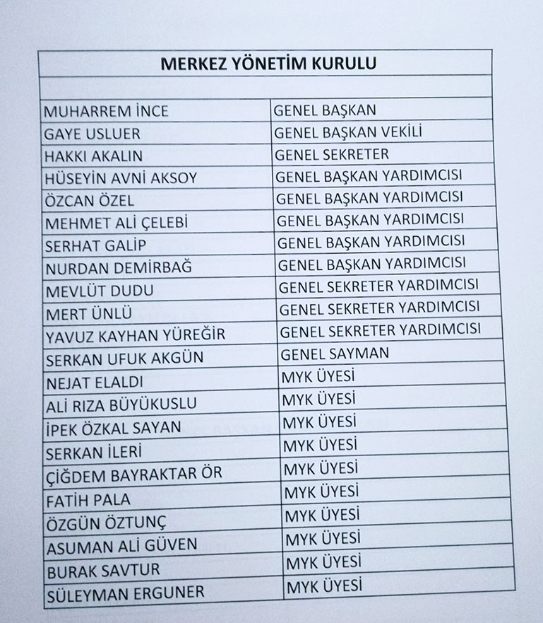 Muharrem İnce’nin başlattığı ”Memleket Hareketi”nin partileşme sürecinde tamamlandı. Muharrem İnce parti başkanlığına seçildi.