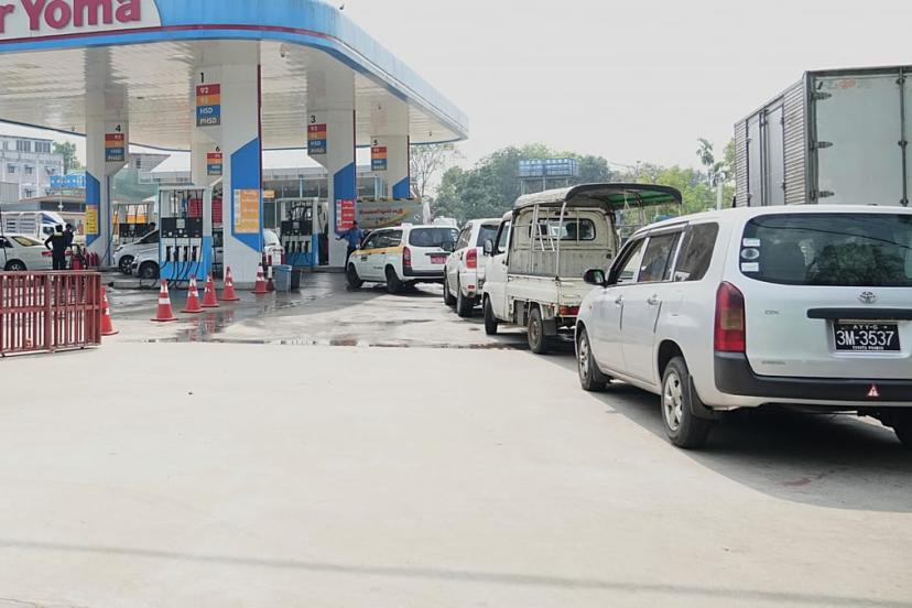 Naypyidaw genelindeki istasyonların önünde uzayıp giden otomobil ve motosiklet kuyrukları, yakıt kıtlığına rağmen günlük yaşamlarını sürdürmeye çalışan halkın artan öfkesini gözler önüne seriyor.