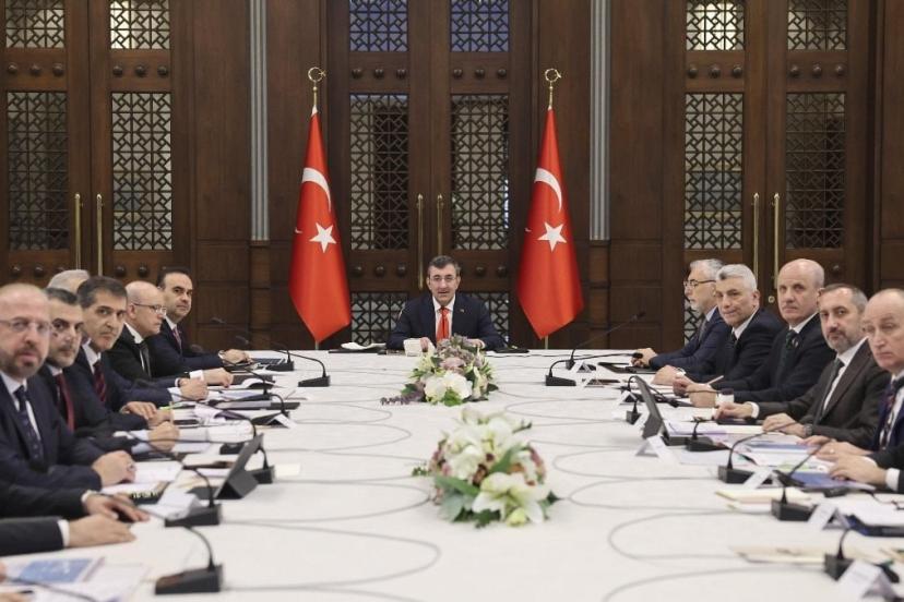 Cumhurbaşkanı Yardımcısı Cevdet Yılmaz, Cumhurbaşkanlığı Külliyesi'nde “Yatırım Ortamını İyileştirme Koordinasyon Kurulu Toplantısı”na başkanlık etti.