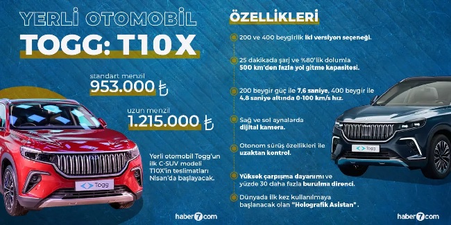 Togg, ''T10X'' adını verdiği, kullanıcıyı merkeze koyan, akıllı yaşam çözümleriyle sürekli internetin içinde olan, uzaktan güncellenebilen akıllı cihazını, iki farklı donanım seviyesi ve iki batarya seçeneğiyle ön siparişe sunuyor.