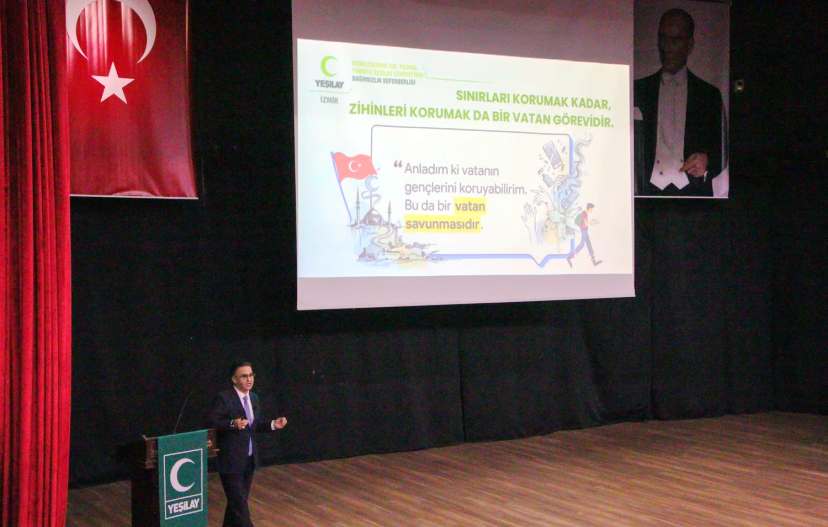 “Bağımlılıkla mücadele” konferansında konuşan Yeşilay İzmir Şube Başkanı Dr. Ömer Yahşi, “Bağımlılığa karşı yürütülen mücadelenin, toplumsal huzurun anahtarı olan bir bağımsızlık seferberliği hatta bir vatan savunması olarak görülmesi gerekir” dedi.
