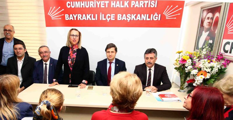Seçilen yönetime başarı dileklerini ileten Cumhuriyet Halk Partisi İl Başkanı Deniz Yücel, CHP Bayraklı ilçe binasındaki il delegelerinin de bulunduğu toplantıda "Bugüne kadar olduğundan daha fazla iktidara yakınız. Bize düşen partimizi iktidara taşımak ve bu güce sahibiz. Birlikte bunu başaracağız" dedi. Yücel, "İktidar kapısı aralandı. El ele, kol kola, omuz omuza bu iktidar kapısından hep birlikte girmek zorundayız. Bu dönem; kırgınlıkları, küskünlükleri, kırgınlıkları bir kenara bırakma ve daha fazla birlik, beraberlik, dayanışma içinde iktidara yürüme dönemi. Türkiye'nin buna ihtiyacı var. Demokrasiye, eşitliğe, özgürlüğe, adalete ihtiyacı var. Biz bunu İzmir'de başardık. İktidarda da başaracak kadrolara sahibiz. Yeter ki, birbirimize kenetlenelim, kucaklaşalım ve bu anlayışla çalışalım. Bu dönem ilçe örgütlerimizin dayanışmasını daha da artıracağız ve hep birlikte iktidara yürüyeceğiz" diye konuştu.