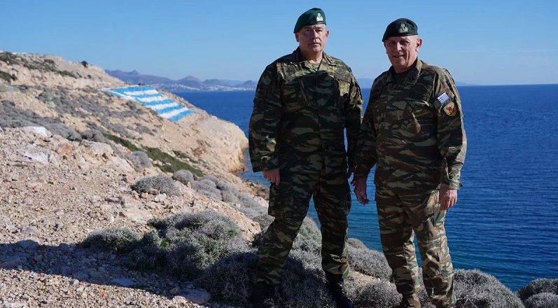 Konstantinos Floros, Keçi Adası'ndaki askeri birliği denetledi, görevlilerden bölgedeki durum hakkında bilgi aldı.