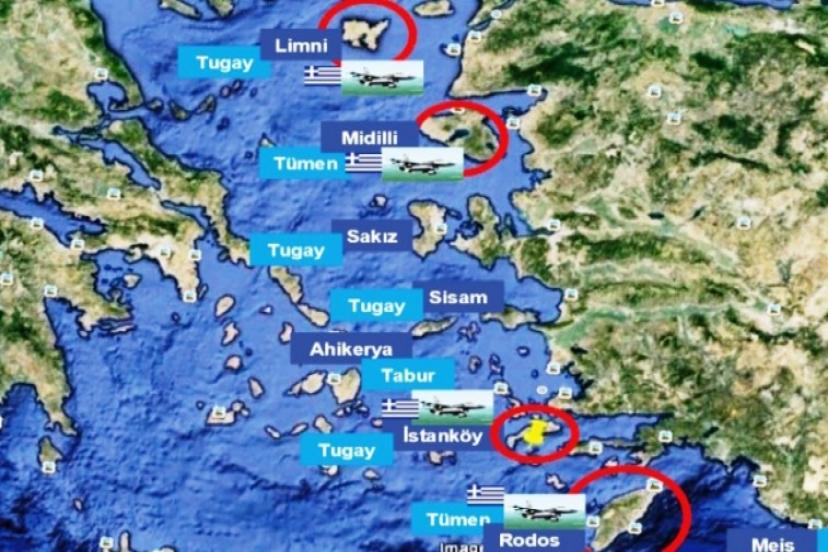 Yunanistan Midilli ve Sakız adaları başta olmak üzere; Sisam, Sömbeki, Nikarya, Libsi, Batnaz, İleriye, Kelemez, İstanköy, Astipalya, İncirli, İlyaki, Herke, Kerpe, Çoban, Rodos, Meis’i ağır silahlarla donattı. Söz konusu adalara binlerce asker konuşlandıran Atina, buralara uçaksavarlar, tank, topçu bataryaları ve hava savunma sistemleri yerleştirdi. KKTC merkezli Diplomatik Strateji Araştırma Merkezinin verileri şöyle: