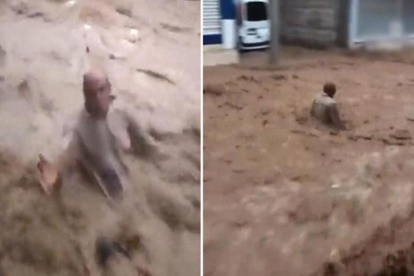 Yürek parçalayan anlar! Sele kapılan yaşlı adam elini uzattı, yardım etmek yerine çekime devam etti