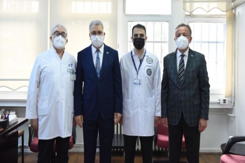 Gastroentereloji Bilim Dalını ziyaret eden EÜ Rektörü Prof. Dr. Necdet Budak, POEM tekniğini uygulayan ekibi tebrik etti. Bilim Dalı Başkanı Prof. Dr. Ömer Özütemiz, su bile içemeyecek haldeki hastaların işlemin uygulandığı gün beslenmeye başladıklarını söyledi.