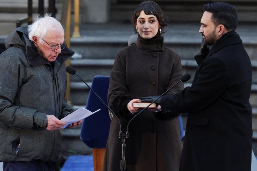 Seçim sürecinde genç Belediye Başkanı'nı açıktan destekleyen ABD Senatörü Bernie Sanders'in eşliğinde kürsüye gelen Mamdani, eşi Rama Duwaji'nin tuttuğu Kur'an-ı Kerim'e el basarak yemin etti.
