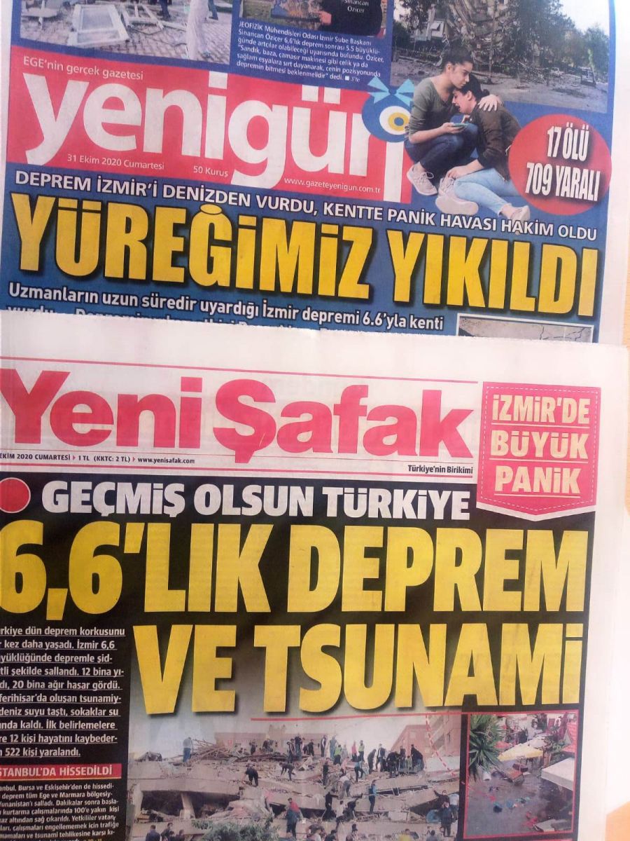İzmir’de daha öncede büyük depremler olmuş.10 Temmuz 1688, 3 Temmuz 1778, 29 Temmuz 1880 ve 01 Nisan 1928 gazete arşivlerine ‘’DEPREM’’ manşetleriyle girmiş.