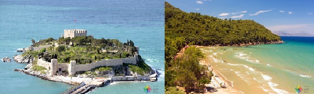 İlçenin şu anki adının kaynağını oluşturan adanın üzerinde, tarihi Bizans dönemine dayanan ve ada ile aynı isimle anılan bir kale yer alıyor. Geçmişte güvercin başta olmak üzere birçok kuş türüne ev sahipliği yapan adanın etrafındaki ve kale içindeki çay bahçelerinde içeceğinizi yudumlarken eşsiz gün batımını seyredebilirsiniz...