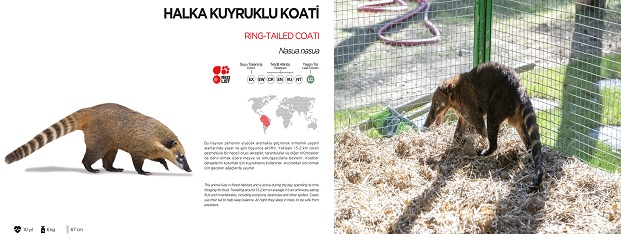 Parkın Bünyesinde 2013 yılında katılan Koati’ler için 280 m2 barınak yapılmış. 4 birey olarak gelen koatilerin yeni doğumlarla birlikte sayıları 13’e çıkmış.