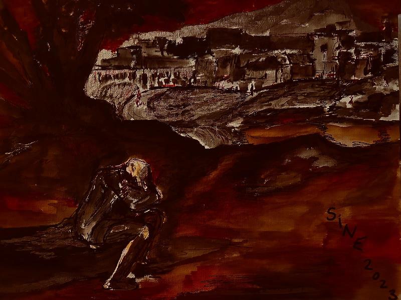 Belki de tarihteki en şüpheli ölümlerden biri İtalyan Ressam Caravaggio’nun ölümü. 38 yaşında ölmüş. Kurşun zehirlenmesi diyorlar ki, son zamanlardaki nedeni belli olmayan ateş ve bilinç kaybı belirtileri tahminen bu şekil bir zehirlenmeye yoğrulmuş. Zaten oldukça kavgacı ve eserekli karakteri ile türlü türlü belalara da bulaşmış. Adam yaralama, yaralama ve öldürme gibi bir sürü olayı var. Yakın zamanda elimdeki peyzaj resimleri kitabında yaptığı bir resme denk geldim. Replikasını yaparken farkettim. Yorumlarda replika yaptığım bu resim için gizem yarattığı ve kafası karışık ve karanlık olduğu söylenir. Yaparken muammada tuttuğu söylenen şeyler aslında görmesinin bozulması olabilir mi diye düşündüm? Öyle ki anlatılan çizimde melankolik Meryem Ana olabileceği yazılan kişi aslında Caravaggio olabilirdi. Kafa karışıklığını belki de bu yolla dile getirmek istemiş olabilir.