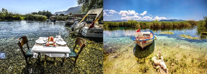 Muğla, Akyaka, Azmak. Bu sıralamanın en güzel noktası en sonda yer alıyor. Azmak Nehri (Kadın Azmağı), hava ne kadar sıcak olursa olsun buz gibi berrak suyu ile biliniyor. Eğer soğuk su sizi ürpertmeyecekse burada yüzebilir ya da nehrin çevresini turlayabilirsiniz. Azmak Nehri’nin restoranları da bir başka güzel. Hatta, “Akyaka’da ne yenir?” sorusunun tam karşılığı olarak “Azmak Nehri’nin içinde, ayaklarınız suyun içindeyken muhteşem bir masada yiyeceğiniz öğle yemeği” derim. Çevresi sazlıklarla dolu olduğu için Azmak bölgesine Amazon da deniliyor. Sazlıklarla çevrili nehirde gruplar halinde kano yapabiliyorsunuz. Bu gezilere katılarak hem nehrin tadını çıkarabilir hem de çok eğlenebilirsiniz. Bu arada nehir gezisinde, berrak sudan sizlere merhaba diyen farklı balık türlerini de görebilirsiniz.