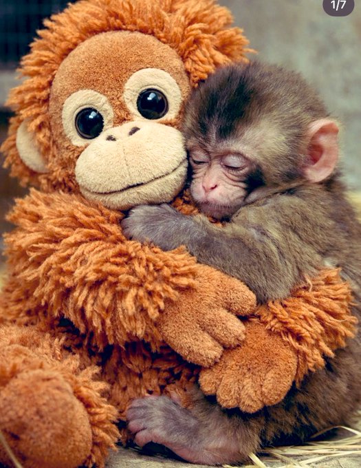 Fotoğraftaki maymunun peluşa sarılışı…ağlatıyor..
