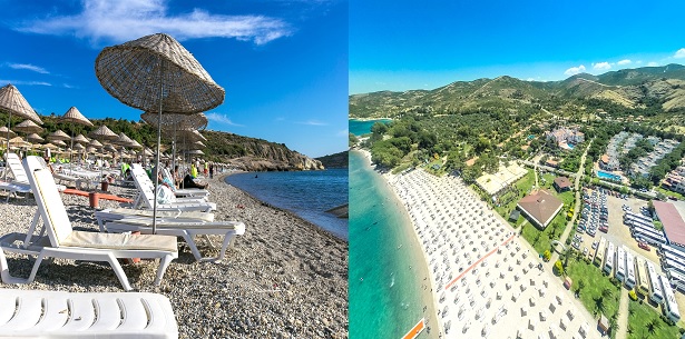 Hanedan Beach: Lokaller arasında Foça’da denize girmek için en çok tercih edilen yerlerden biri. Tahmin edebileceğiniz üzere yiyip içebileceğiniz bir tesis, şezlongu, şemsiyesi mevcut. Girişi haftaiçi 15, haftasonu 25 lira. Plaj gayet büyük çok rahat yer bulabilirsiniz. Denizi çok temiz ve berrak, ara sıra ufak balıklar sizi cimcikliyebiliyor, plajın yanında bulunan yiyecek-içecek işletmesinde bir çok seçenek var. Size kart veriyorlar bu karta para yükletip gün boyu yiyecek ve içecek ödemelerini bundan yapıyorsunuz.