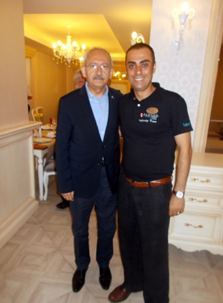 Güvenlik kapı beni aradı Müdürüm içeri az önce konvoy halinde otobüsler girdi yanlış görmediysem otobüste Kılıçdaroğlu vardı dedi! Nasıl olur dedim onların programı bizim diğer otelimiz olan merkezdeki Ramada’da olmaları lazım dedim Mehmet abi ile göz göze geldik camdan bir baktım Sayın Kılıçdaroğlu el sallıyor otobüsten iniyor…
