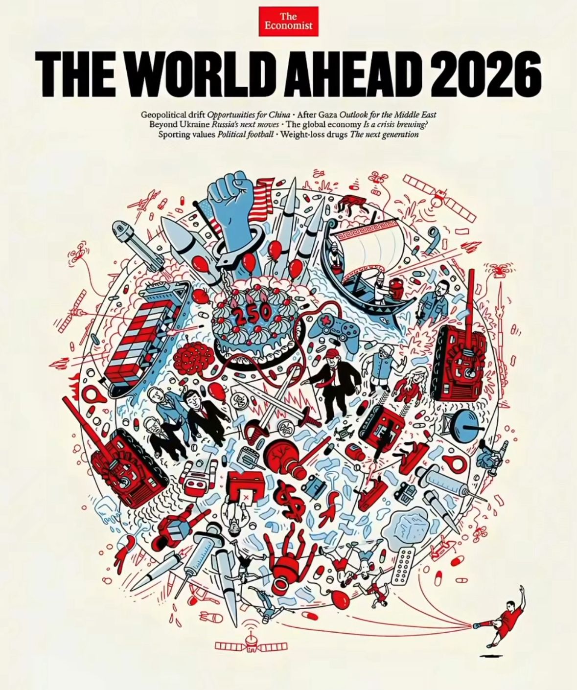 Görsel: The Economist, “The World Ahead 2026” kapak illüstrasyonu. (Yorum ve analiz amacıyla kullanılmıştır)