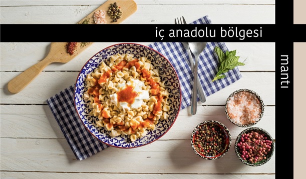 Mantı öyle bir yemek çeşidi ki dünyanın dört bir yanında farklı versiyonlarıyla sevilerek tüketiliyor. Kimi kıymalı oluyor kimi sebzeli, kimi fırında çıtır hale getiriliyor kimi suda haşlanıyor, kimi büyük parçalar kimi minik minik toplar halinde servis ediliyor ama hepsinin ortak özelliği tabii ki yemeğin ana malzemesi olan mantı hamuru. Ülkemizde de hemen hemen her yörede yapılan mantı özellikle bir kaşığa 40 adet sığdırabilen Kayserililer ile özdeş ve İç Anadolu Bölgemizin temsilcisi. Etli yemek denince akla gelen yerlerden biri İç Anadolu bölgesi. Yapımı zahmetli ve uzun süren ama bir o kadar lezzetli olan Kayseri mantısı, yedikçe isteyeceğiniz bir tat. Ankara, Eskişehir, Çankırı, Kırıkkale, Yozgat, Sivas, Kayseri Konya, Niğde, Nevşehir, Karaman, Kırşehir ve Aksaray ilerinin bir araya getirdiği İç Anadolu Bölgesi, hepimizin sevdiği yöresel lezzetlerle doludur. Bölge yemeklerine baktığımızda genel olarak hamur işi, kıyma, soğan, salça ve biber kullanıldığını söyleyebiliriz. Bölgenin ünlü lezzetleri ise; çiğ börek, mantı, etli ekmek, pastırma, yağlama, Balaban köfte, arabaşı, ayva dolması, madımak, ekmek kadayıfıdır.