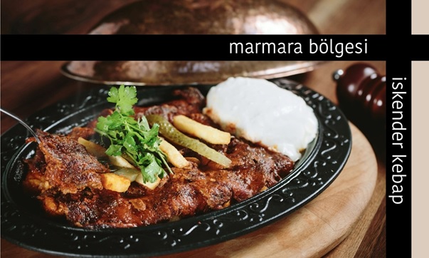 Marmara Bölgesi’ni temsil eden yemeğimiz Bursa’dan çıkıp namını sadece ülkeye değil dünyaya yayan İskender kebap. Üzerine tereyağı dökülerek servis edilen İskender’in hangi ustanın elinden çıktığı oldukça önemli. Burada küçük ama çok önemli bir bilgiyi de geçeyim; İskender kebap sanıldığı gibi yaprak dönerden değil İskender dönerden yapılıyor. Aralarındaki fark ise yaprak dönerin sadece et, İskender’in kıyma ve et karşımı olması. Marmara bölgesinde de yine et ve sebze yemekleri meşhur.